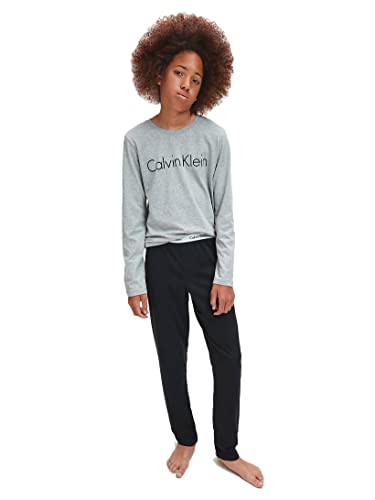 Calvin Klein Pojkar Ls Knit Pyjamas-set, tvådelad pyjamas (2-pack), Grå heather W/svart, 12-14 år
