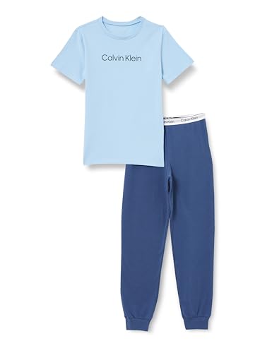 CK JEANS Stickad pyjamas för pojkar (SS+manschettbyxa) B70B700514, blå (Oceana/W/Bluebell), 8-10, Blå (Oceana/W/Blåklocka), 8-10 Years