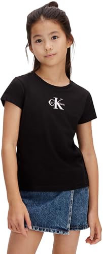 Calvin Klein flickors mikromonogram topp LVCKSJA15G S/S t-shirt, svart (1716 svart), 8 år