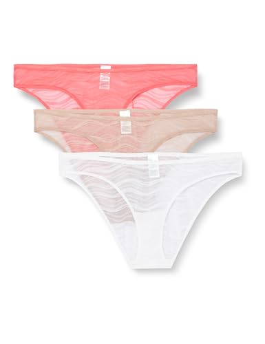 Calvin Klein Dam 3-pack bikini trosor, Flerfärgad (Calypso korall/ceder/vit), L