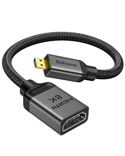 Silkland 8K Micro-HDMI to HDMI 2.1 Adapter, 8K@60Hz, 4K@120Hz, 48Gbps, HDR, eARC, Micro-HDMI Adapter Kompatibel med GoPro Hero, Raspberry Pi 5/4, Kamera, Monitor, Cam Link, Samsung G8 G9, TV