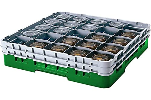 Cambro 25S318-151 3-5/8-tums kamrack polypropylen stengods och glasställ med 25 fack, full, mjuk grå
