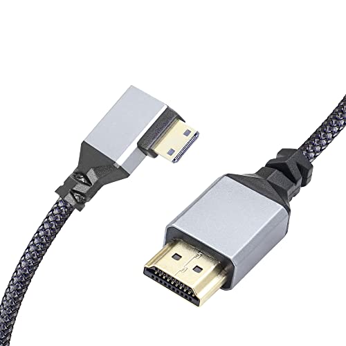 RIIEYOCA 90-Degree Mini HDTV to HDTV Adapter Cable - Aluminum, Nylon Braided, 50cm - Supports 4K UHD for Laptop, TV, Camcorder
