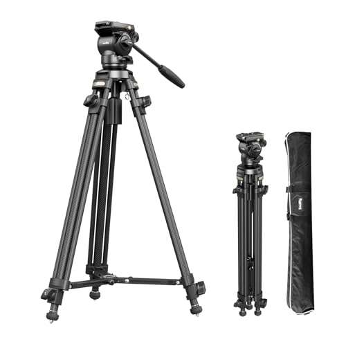 SMALLRIG Lightweight Carbon Fiber Video Tripod Kit med Step-Less Damping Fluid Head, 64'' Camera Tripod med Detachable Handle, QR Plate, Lift Rope, Load up 13.2lb för Camcorder, Cameras AD-50-4685