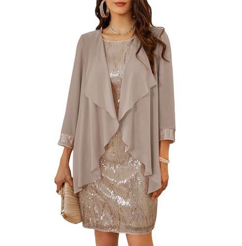 GRACE KARIN Ärmlös rund hals paljetter cami-klänning elegant tvådelad tyllkofta aftonklänningar för fest, kaki, L