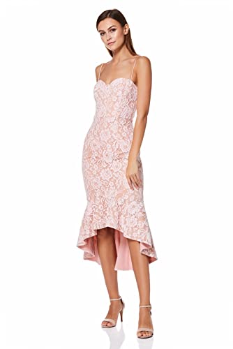 Cleo All Over Lace Cami Strap Midi Dress, Pink/Nude, EU 38