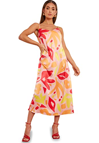 Hope & Ivy Dam Talia slips droppe ärm midi cami klänning i tonad blommig satin speciellt tillfälle, Rosa, 38 SE