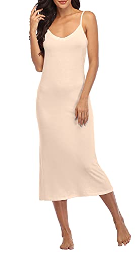 Summienlink Women's Long Full Slip for Under Dresses V Neck Nightgown Sexy Cami Dress (Nude, Small)