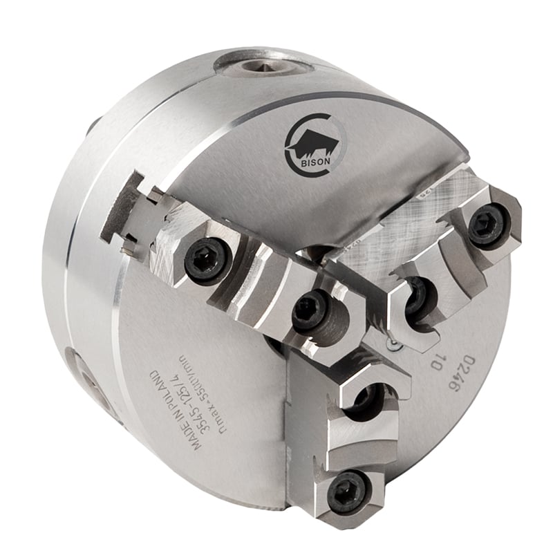 BISON 4-Backad Centrerpatron Ø250 mm - Stål - Kon 8 - DIN 55029 - Camlock D1 Montering - 3744-250-8