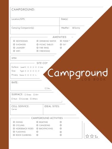 Camp Site Rating Log Book: RV motorhomes campers and Tent Camping Journal with Campground Review Pages, Amenities Checklist, and Lined Notes for Outdoor Travel Memories