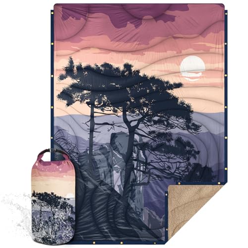 KawaGebo Kamp Sherpa Camping Blanket - Outdoor Travel Blanket Ultralight Warm Waterproof 78 X 56 Inches Sleeping Bag