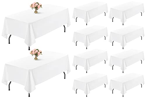 Showgeous Vit bordsduk i polyestertyg, för rektangulära bord på 2,4 m, tvättbara bordsdukar för bröllop, bankett, restaurang, buffé, fester och camping, 153 x 320 cm, 10-pack