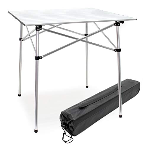 Wiltec Aluminium camping rullbord med 70 x 69 cm hopfällbar bordsskiva och transportväska, hopfällbart bord