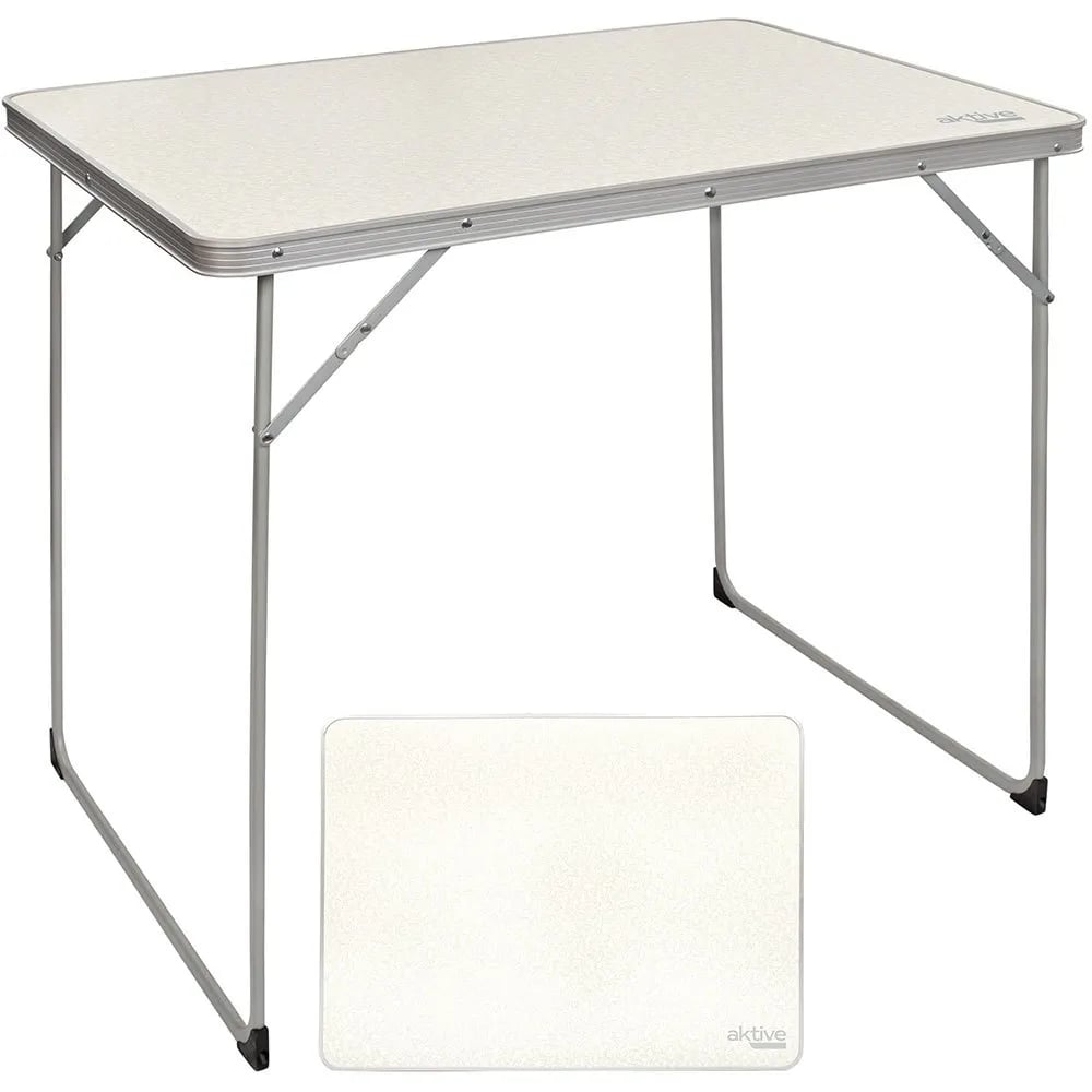 AKTIVE Fällbart bord bärbar camping halkfri aluminium och trä MDF, med handtag för enkel transport, högt bord, picknickbord, mått 90 x 60 x 40/70 cm, campingtillbehör (63019)