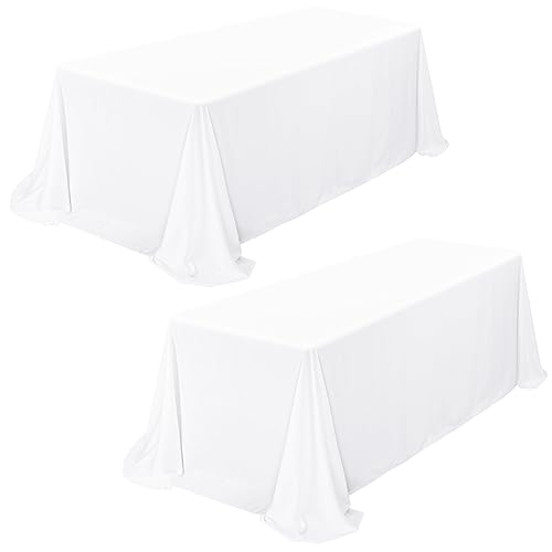 Showgeous 2 pack vit polyester bordsduk för 2,4 m rektangulära bord 229 x 396 cm rektangulärt tyg bordskläder tvättbart vitt bordsskydd för bröllop bankett restaurang buffé fester camping