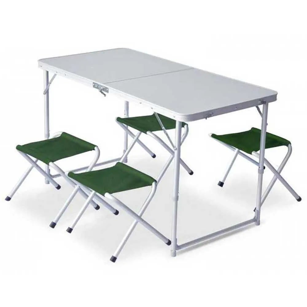 AKTIVE Camping bärbart fällbart bord för 4 personer, justerbar höjd, inkluderar 4 pallar, trädgård, med stolar inuti, fällbara bord och stolar set (52893)
