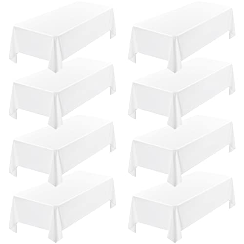 Showgeous Vit bordsduk i polyestertyg, för rektangulära bord på 1,8 m, tvättbara bordsdukar för bröllop, bankett, restaurang, buffé, fester och camping, 153 x 260 cm, 8-pack