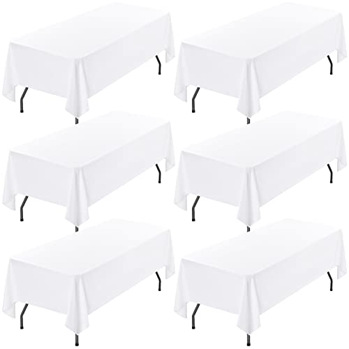 Showgeous 6 pack vit polyesterduk för 6 fot rektangulära bord 60 x 102 tum rektangulärt tyg bordskläder Tvättbara vit polyester bordsdukar för bröllopsbankett Restaurang Bufféfester Camping