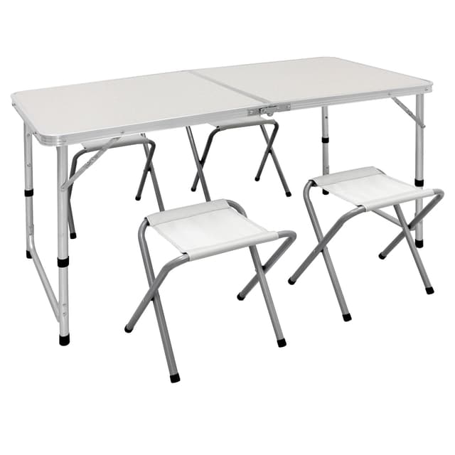 Camping Fällbord trädgård bord med 4 pallar aluminium 120 cm vit / kräm