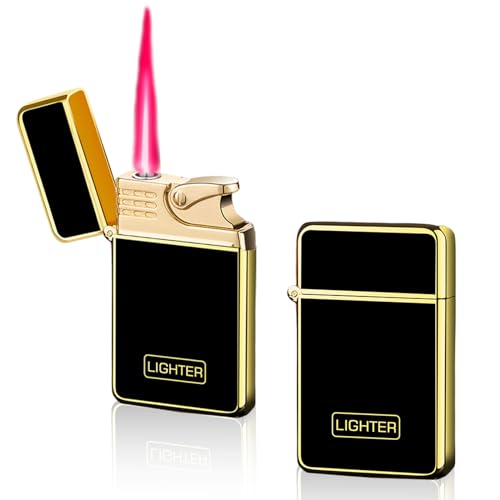 DOUBFIVSY Jet Butan Tändare med Presentförpackning, Stormtändare Påfyllningsbar Vindtät justerbar Gaständare för Cigarr, Camping, BBQ, Gåvor för Män(Säljs Utan Gas)(Gyllene)