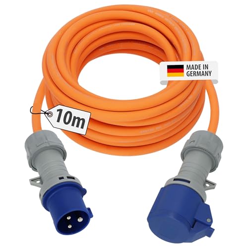 Brennenstuhl Camping CEE-förlängningskabel med CEE-kontakt och vinkelkoppling inkl. skyddskontakt kombiuttag (10 m kabel i orange, 230 V/16 A, användning utomhus, tillverkad i Tyskland)
