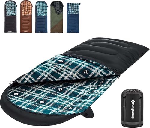 KingCamp Sovsäck för vuxna, vinter | flanellfodrad kallt väder sovsäck för 4 årstider, stora och höga sovsäckar, lätt, vattentålig för camping, backpacking, vandring, svart höger
