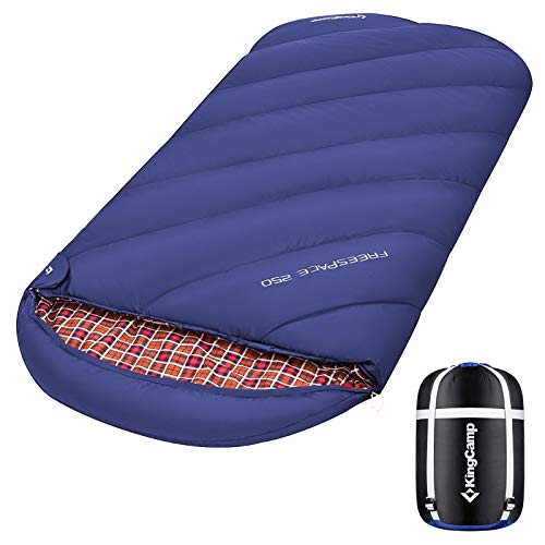 KingCamp Sovsäck för vintern, för alla 4 årstider, överdimensionerad filt/sovsäck av bomull/flanell för vuxna, för camping, varm och lätt, för inomhus och utomhus, blå