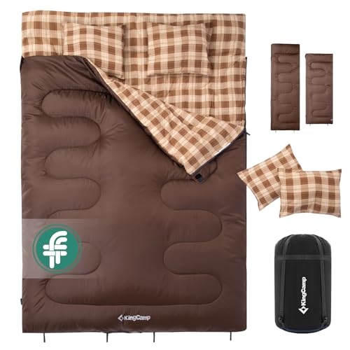 KingCamp Dubbel sovsäck med kudde för 4 säsonger, sovsäckar för vuxna barn bomull flanell vinter lätt extra stor 2 personer för camping backpacking vandring inomhus utomhus