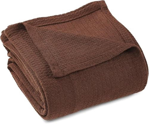 Superior Bomullsfilt, våffelväv, filt för picknick, strand, resa eller camping, bekväm filt, sovrumsdekor, överkast för säng, soffa, vilstol, stickad med vaxkakemönster, King-size, chokladbrun