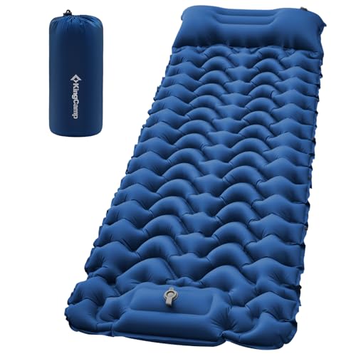 KingCamp Campingmatta, ultralätt uppblåsbar campingmatta med inbyggd fotpump, hållbar kompakt uppblåsbar sovmatta med kudde, uppblåsbar campingmadrass för backpacking vandring camping, blå