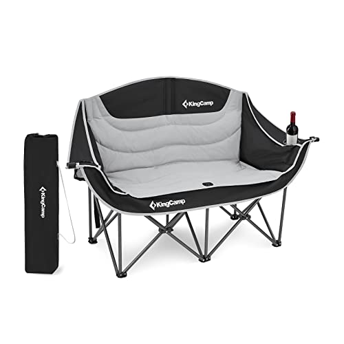 KingCamp Dubbel campingstol, fällbar, bekväm, vadderad, 2 sitsar, med mugghållare och armstöd, överdimensionerad fällbar trädgårdsstol för camping, picknick och fiske, svart/grå