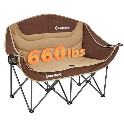 KingCamp Dubbla campingstolar för vuxna, slitstark, 2-sits, med mugghållare och armstöd, överdimensionerade, hopfällbara trädgårdsstolar för camping, picknick, fiske, festival, fotboll, konsert