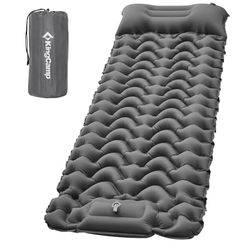 KingCamp Campingmatta, ultralätt uppblåsbar campingmatta med inbyggd fotpump, hållbar kompakt uppblåsbar sovmatta med kudde, uppblåsbar campingmadrass för backpacking vandring camping, grå