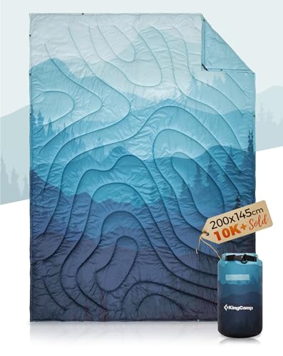 KingCamp Ultralätt resefilt, vattentät, kompakt, utomhus, varm, liten förpackningsstorlek, för camping, kontor, utomhus (Frosttal, 200 x 145 cm)