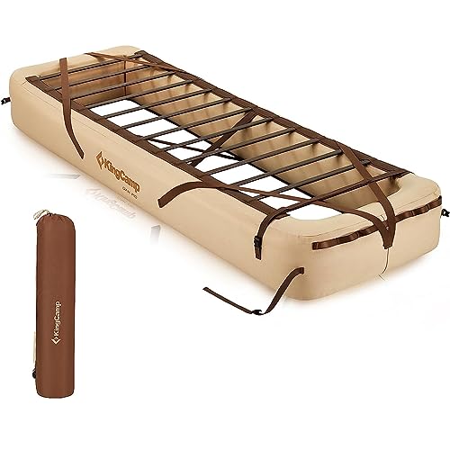KingCamp OAK uppblåsbar sängbas, luftsäng, sängram, bärbar, hög luftsäng, enkel/dubbel, för vuxen, gästsäng för camping och hem, 200 x 70 x 25 cm, kaki