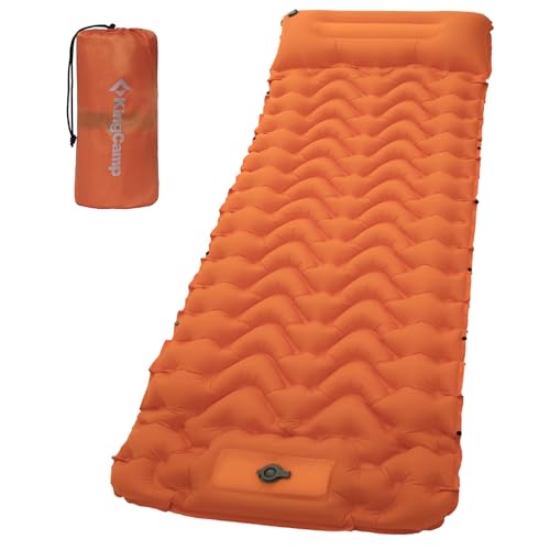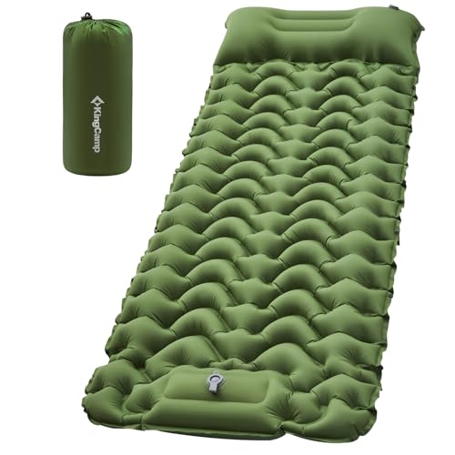 KingCamp Campingmatta, ultralätt uppblåsbar matta med inbyggd fotpump, hållbar kompakt uppblåsbar sovmatta med kudde, uppblåsbar campingmadrass för backpacking vandring camping