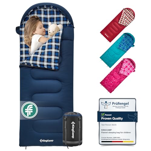 KingCamp Sovsäck för barn, flanellfodrad, kallt väder, 3-4 säsonger, sovsäck för tonåringar, ungdom, barn, pojkar, flickor, camping, vandring, backpacking, vattentät, lätt och kompakt, blå