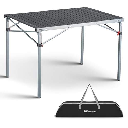 KingCamp Hopfällbart bord för camping i aluminium med bärväska, picknickbord 107 x 70 cm, stöd upp till 80 kg