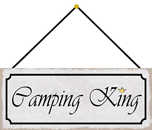 Schatzmix Camping King metallskylt 27 x 10 cm dekorativ skylt tennskylt med snöre plåtskylt, plåt, flerfärgad 27 x 10 cm