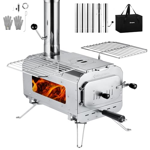 KingCamp tältspis i rostfritt stål 46 x 28 x 232 cm, tältspis bärbar vedspis med fällbara ben och 6 skorstenar för trädgård, camping, utomhus, tält
