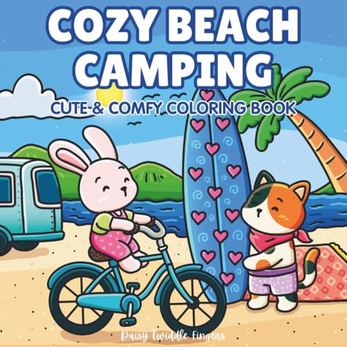 Cozy Beach Camping - Cute & Comfy Coloring Book: Bold & Easy Adult Coloring for Stress & Anxiety Relief — Vintage Camper, Beach Lounges, Kitchen Treats & Sunrise Coffee