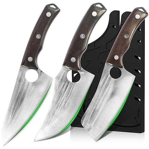 FULLHI 3st slaktknivsset med slida, handsmidd kockbenkniv, köttkniv av högkolstål för kök, camping och BBQ