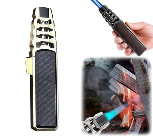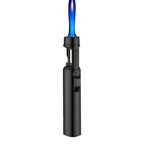2024 Metall Vindtät Rak Ficklampa Blå Flame Tändare, Kraftig Turbo Fackla Påfyllningsbar Butangas Tändare Justerbar Flame Jet Ficklampa for BBQ Camping Kök (Color : A)