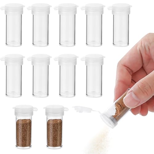 IDOBY Set med 12 plastkryddburkar, transparent kryddburk, BPA-fri plast, camping, kryddlåda, kök, salt och pepparströare, kryddburkar för förvaring, kryddor (transparent)
