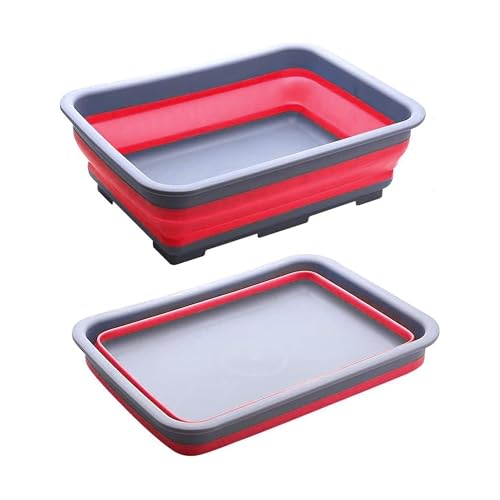 Zuvo 10 l hopfällbar tvättskål | kompakt skål för kök, camping och husvagnar | Hållbart hopfällbart tvättställ – rött och grått platsbesparande design