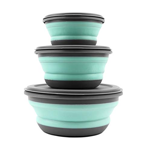 TAIHE Vikbar skål, 3 stycken silikonskålar vikbar med lock, bärbar camping salladsskål matförvaringslådor, vikbar fruktsallad skål för camping vandring kök skola utomhus (grön)