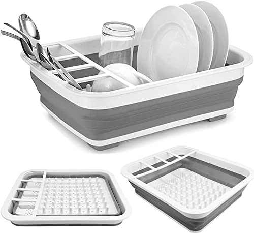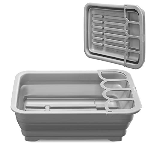 AMZMUKAUP hopfällbart droppställ – diskskål för camping, husvagn, utomhusaktiviteter, kök – grå