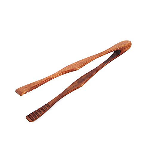Ziyero Utmärkta trätänger naturligt trä matklämma trä kökstänger bambu te klämma hållbar, miljövänlig, lämplig för kök, camping, grill, buffé, restaurang etc (brun)