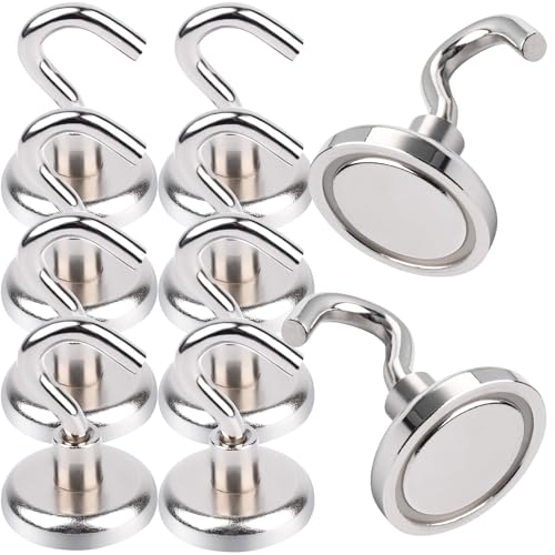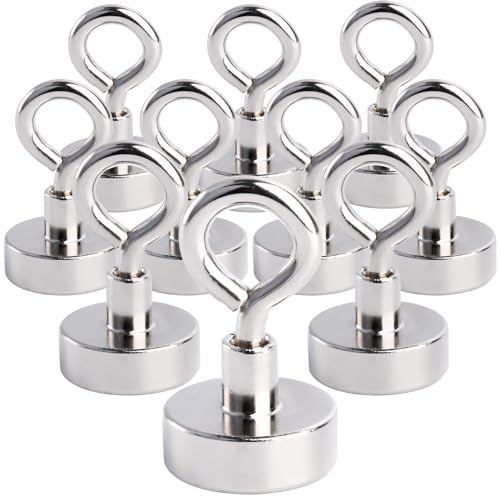 MIN CI 10 stycken magnetkrokar extra starka, 20 mm neodymmagneter krokar dragkraft 10 kg (22 pund) öljettmagnet magnet med krok magnetisk hållare rund magnet magnetisk krok för camping garage kök