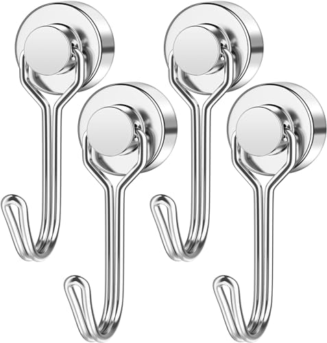 FINDMAG Magnetkrok, 4 stycken 13,6 kg + dragbar svängbar gunga, neodymmagnet, magnetiska krokar, krokmagnet, starka magneter för upphängning, tak, garage, kök, camping van, grillstativ